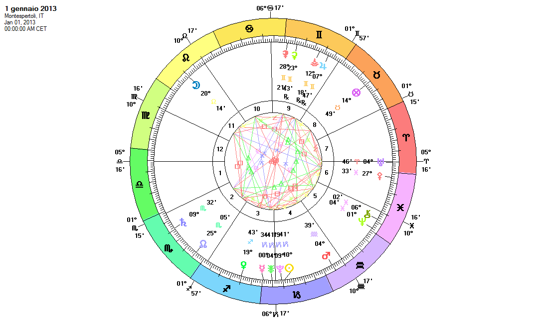 L’Astrologia è un sistema che tiene conto delle stagioni, dei movimenti nel nostro sistema solare, in particolar modo della nostra Terra in relazione agli altri pianeti e alla nostra stella, il Sole. Graficamente si può esprimere ciò con un cerchio in due dimensioni con le quattro direzioni (nord, est, sud e ovest), al suo centro si colloca la Terra, perché la abitiamo noi, ed intorno ad essa “girano” le stelle, i pianeti, il Sole e la Luna. Al momento della nostra nascita il cielo si configurava in un modo specifico visto nel tempo e collocato nello spazio (luogo di nascita). I pianeti, le quattro direzioni il Sole e la Luna si trovavano in un determinato modo, relazionandosi attraverso vari configurazioni geometriche intorno al cerchio di 360° (vicino ai nostri 365 giorni dell’anno, in effetti ci vuole un anno per i nostro Sole di fare un giro intero dello zodiaco (il cerchio astrolgico)).