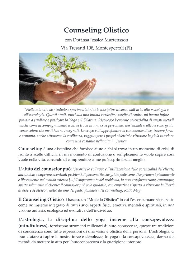 Presentazione Counseling Yoga e Mindfulness sul mio canale YouTube Jessica Martensson: https://youtu.be/37XH60sMWqw