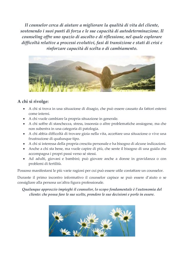 Ha una formazione di base come l’operatore olistico in discipline bionaturali, ma con una specializzazione aggiuntiva in counseling.
